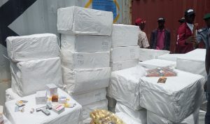 Addressing journalists, the Customs Area Controller of Apapa Command, Comptroller Babatunde Olomu, stated that, “as a result of our painstaking efforts, we recently uncovered 6 more containers laden with prohibited items mostly unregistered pharmaceuticals. Other items in the seized containers are cosmetics, used clothing and two vehicles illegally imported into the country. These seizures are worth a total DPV: N3,247,427,969.00 (Three billion, Two hundred and forty-seven million, Four hundred and twenty-seven thousand Nine hundred and sixty-nine naira).”