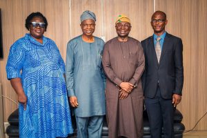 L-R: Permanent Secretary, Ministry of Education, Science  and Technology, Oyo State, Mrs Oyinlola Toyin; Honourable Commissioner for Education, Science and Technology, Oyo State, Olusegun Emmanuel Olayiwola; Nigerian Maritime Administration and Safety Agency, NIMASA, Dr Dayo Mobereola, Dr.Dayo Moberola and Vice Principal, Administration, St. Patrick’s Grammer School during a visit by the NIMASA Director General to the Ministry of Education, Science and Technology in Ibadan, Oyo State.#